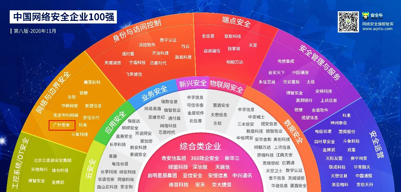 2020年11月3日,安全牛正式發(fā)布《2020中國網(wǎng)絡(luò)安全企業(yè)100強報告》。世安憑借著網(wǎng)絡(luò)與邊界安全領(lǐng)域的成果,成功入選了安全牛2020中國網(wǎng)絡(luò)安全企業(yè)100強,充分體現(xiàn)了其在網(wǎng)絡(luò)安全行業(yè)中的領(lǐng)先地位。