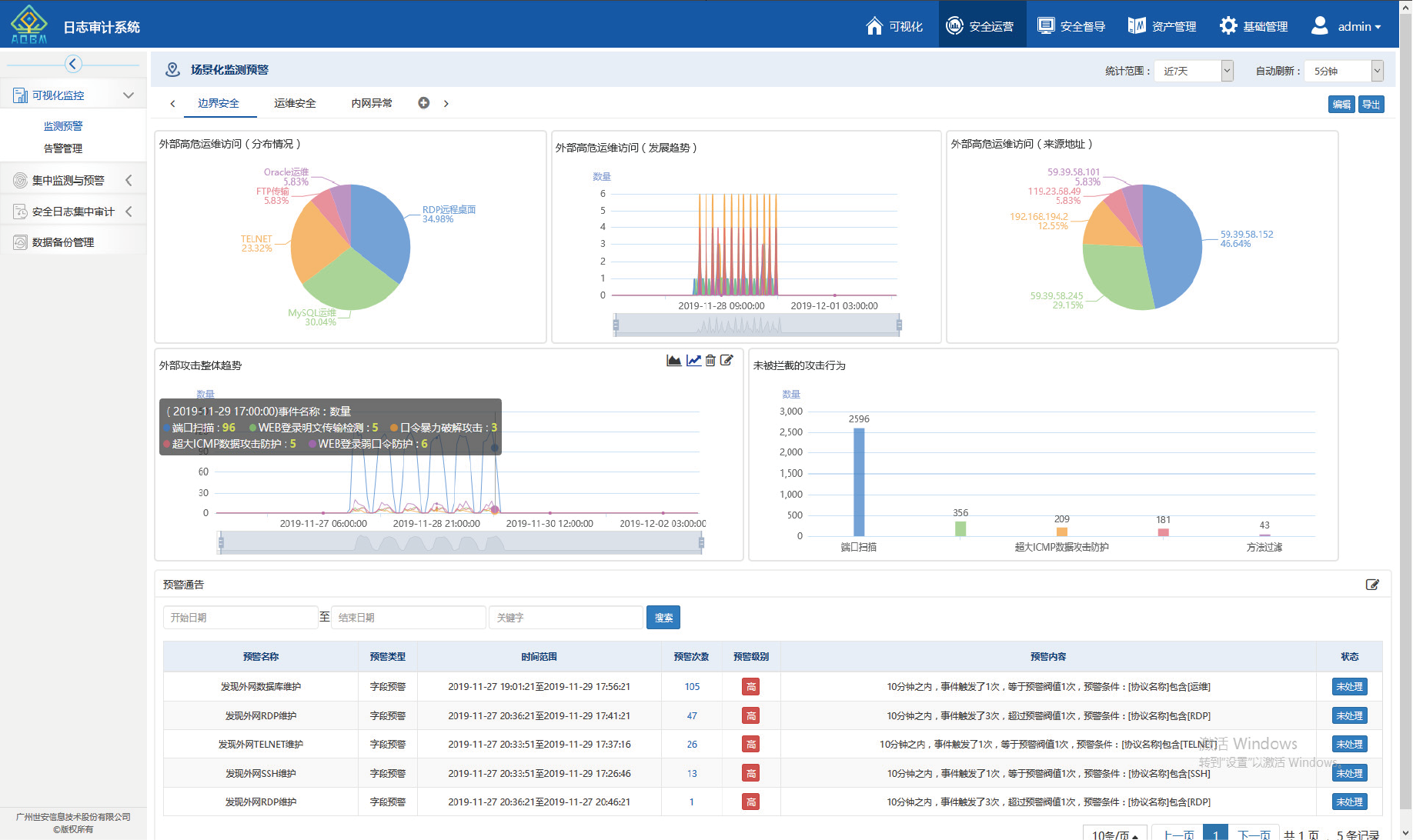 基于《網(wǎng)絡(luò)安全法》和《等保2.0》,采用大數(shù)據(jù)關(guān)聯(lián)分析技術(shù),實時監(jiān)控數(shù)據(jù),準確定位異常風險和關(guān)鍵故障,使運維工程師能詳細進行關(guān)聯(lián)分析與攻擊分析,進而快速處理故障。