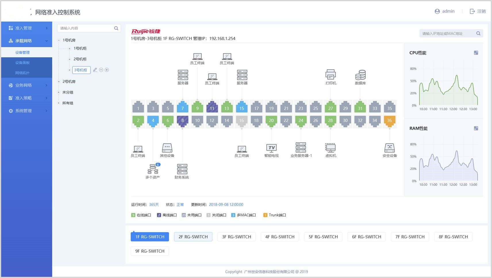 同時,根據(jù)識別網(wǎng)絡中交換機廠商、型號,世安NAC可實現(xiàn)交換機面板視圖管理與端口列表管理,直觀的展示交換機工作狀態(tài),實時監(jiān)控交換機CPU、內存、端口流量統(tǒng)計等,并支持SNMP模板,節(jié)省手動配置交換機時間。
