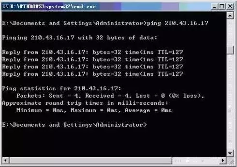 如果測(cè)試成功,表明本地網(wǎng)絡(luò)中的網(wǎng)卡和載體運(yùn)行正確。但如果收到0個(gè)回送應(yīng)答,那么表示子網(wǎng)掩碼不正確或網(wǎng)卡配置錯(cuò)誤或電纜系統(tǒng)有問(wèn)題。